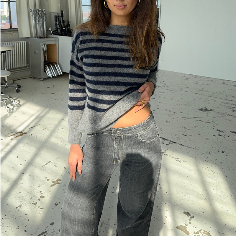 Long-sleeved Round-neck Cropped Sweaters for Women